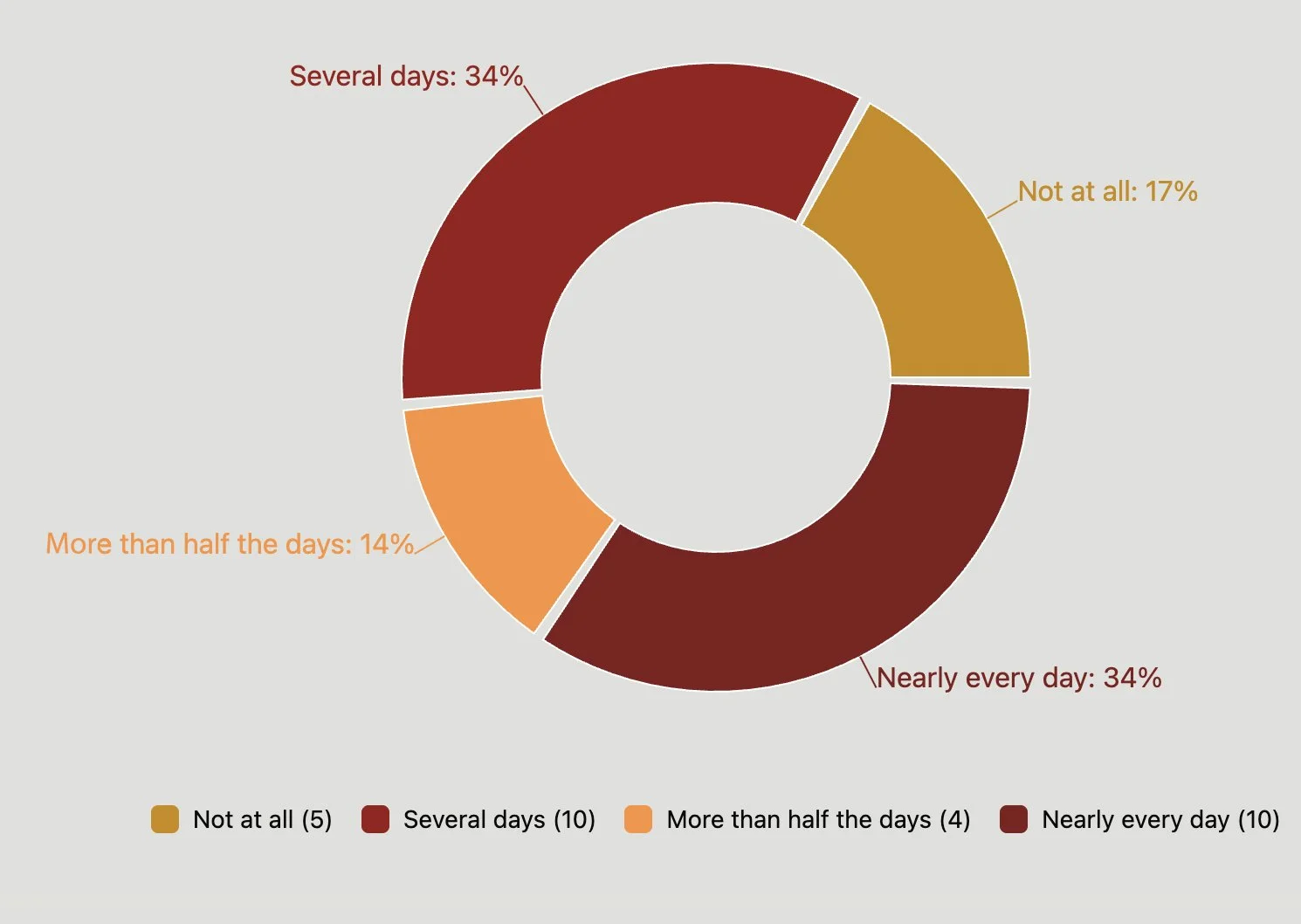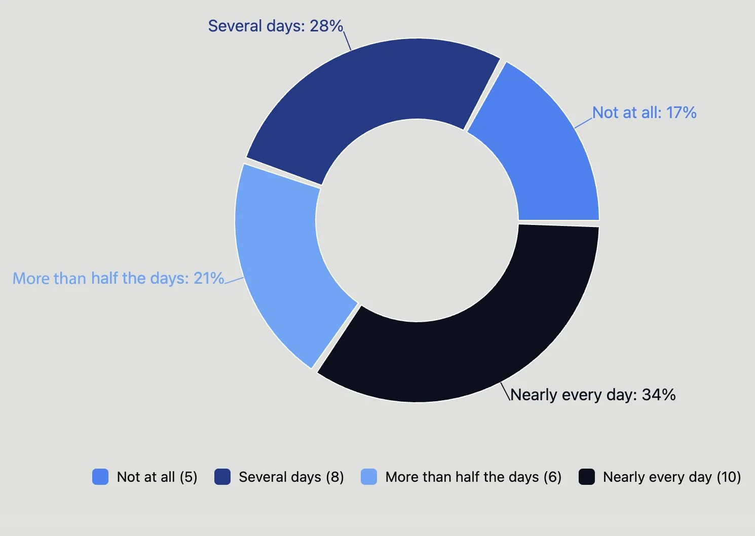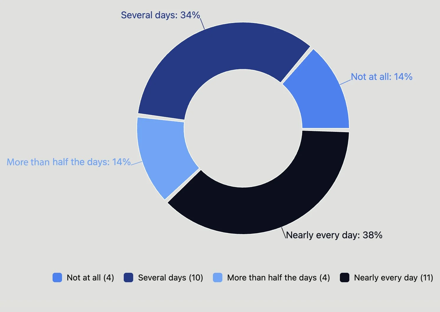 Note that Signal Levels reflect the overall weighted frequency of this experience, converted to a number out of 100 for easier interpretation. High Strain Levels show the proportion of people reporting this more than half the days or nearly every day, while Extreme Strain Levels highlight those experiencing it nearly every day — helping us understand both the overall pattern and how concentrated the strain may be within the group.