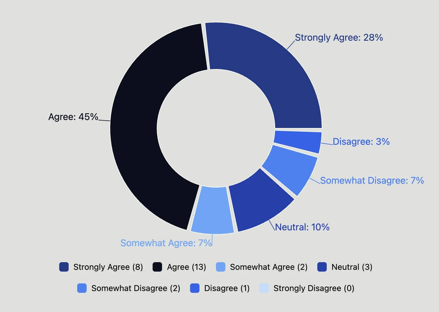 Question 18 serves a different purpose. It measures readiness for ongoing measurement and dialogue — indicating managers’ readiness to continue structured measurement and improvement. This reflects governance, transparency, and openness to this work.