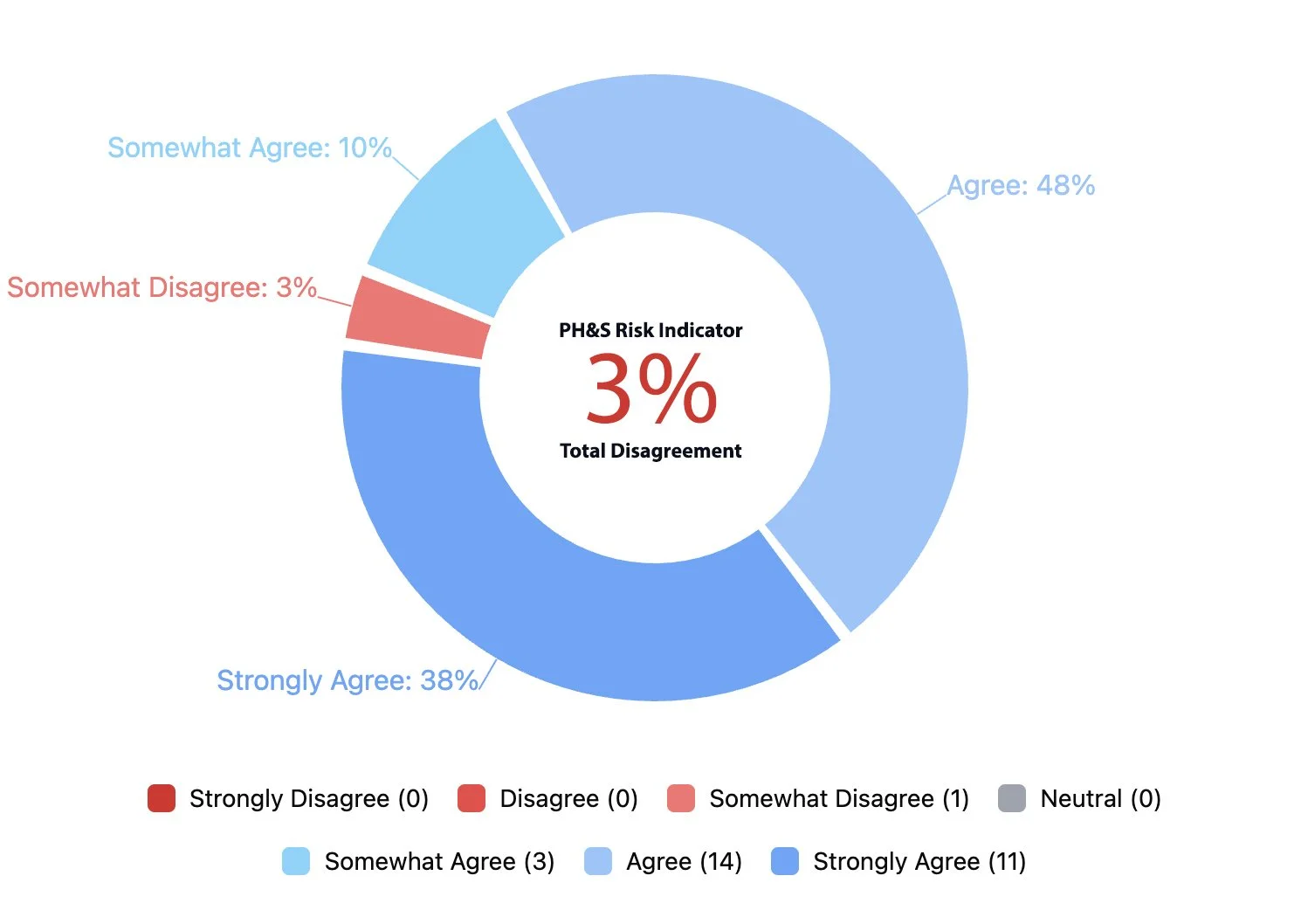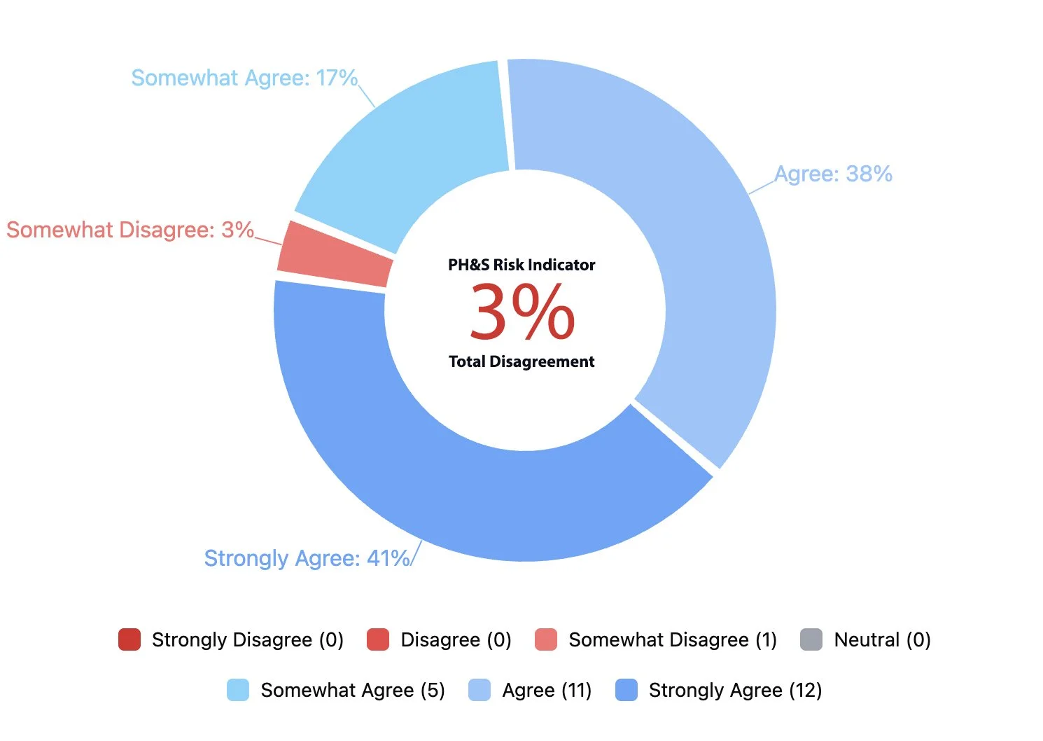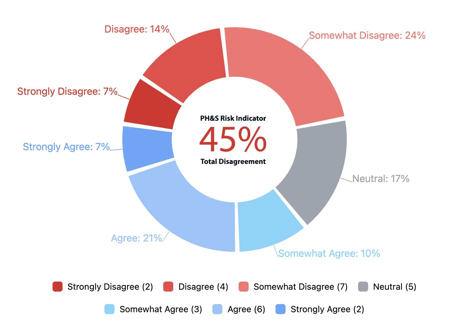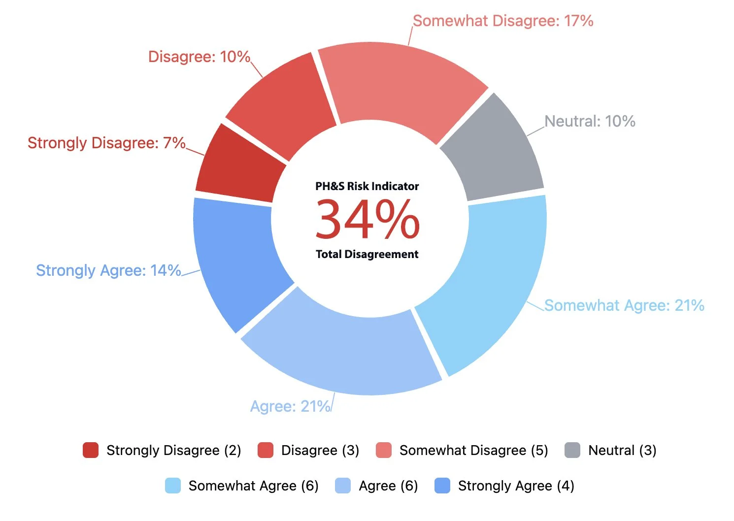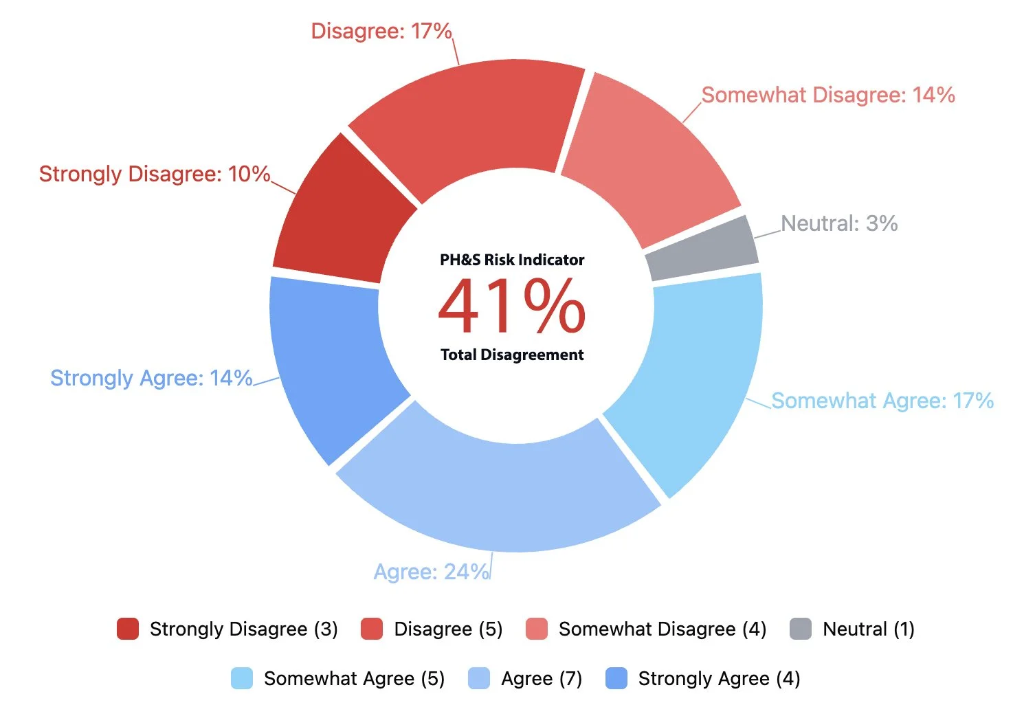 *Average Weighted Response reflects overall severity across the full response distribution. PH&S Risk Indicator reflects the percentage selecting Somewhat Disagree / Disagree / Strongly Disagree.