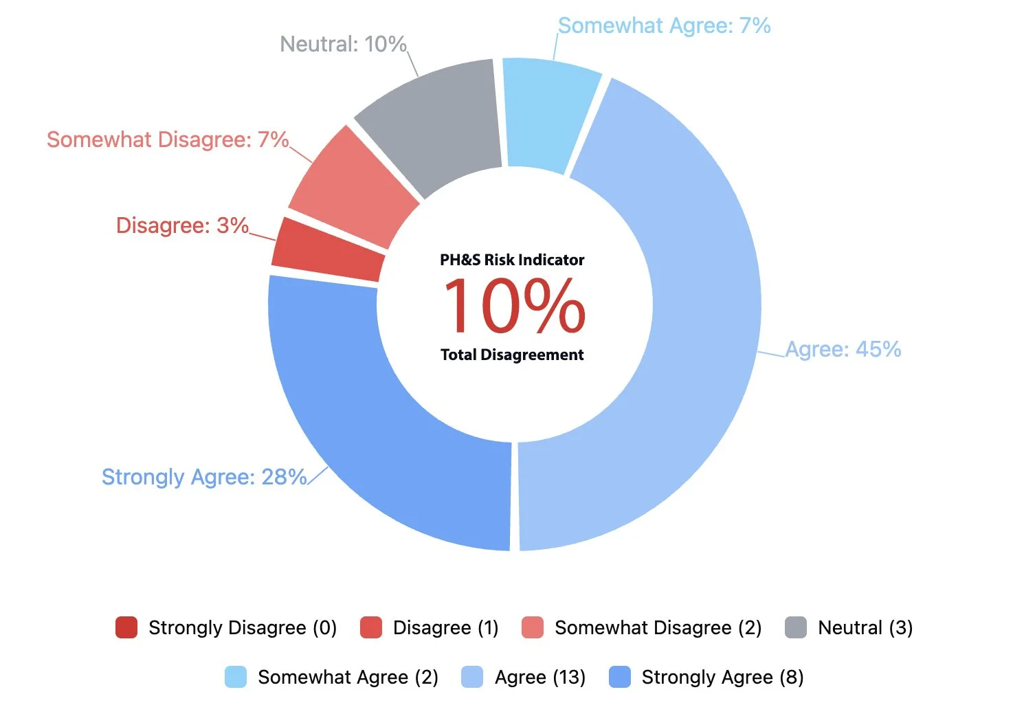 When reviewing the full set of results, it is clear that not all PH&S conditions carry equal weight. Some areas register higher severity and broader disagreement, while others contribute less to overall exposure.