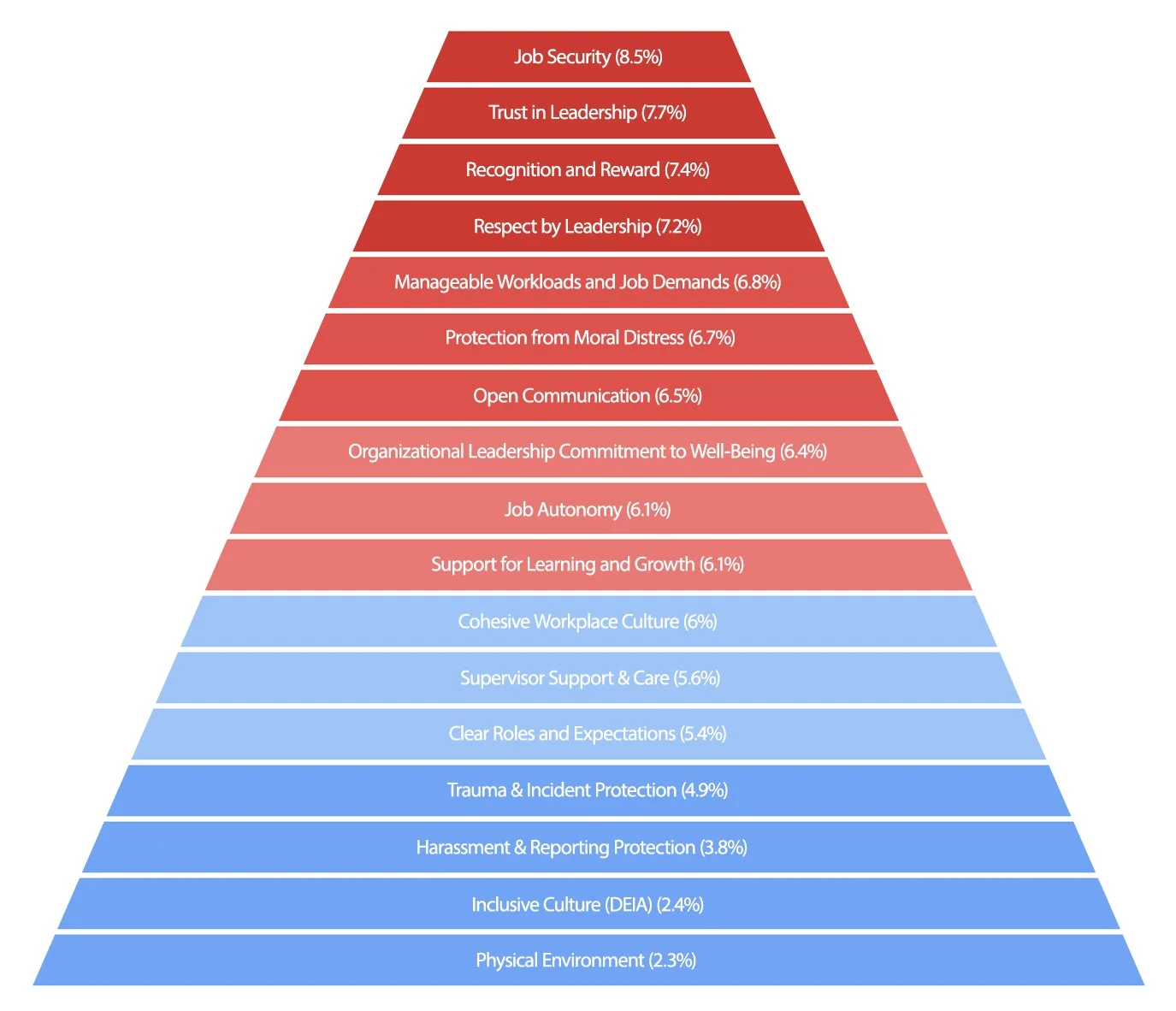 Because the values across these top conditions are close, we have highlighted Job Security / Stability, Trust in Leadership, and Respect by Leadership as the primary focus areas in this report. This reflects our choice to place greater interpretive weight on the Risk Indicator when identifying priority areas, as it reflects how many managers are actively disagreeing with the statement.